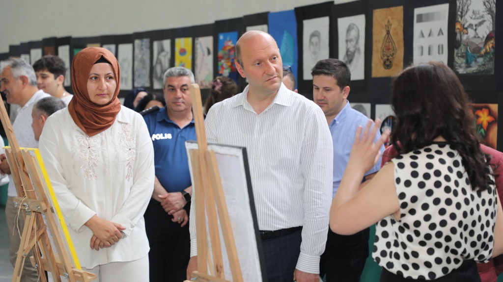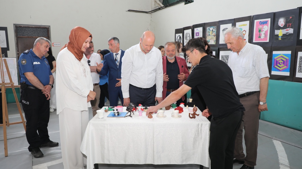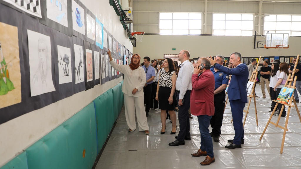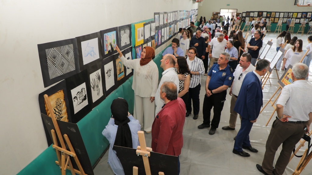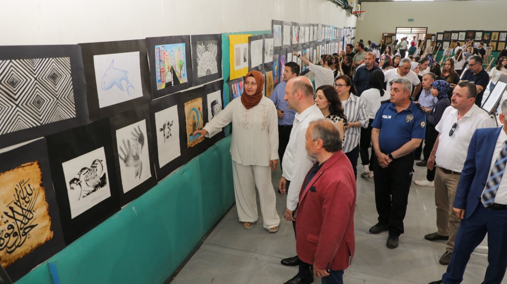 570 öğrencinin 500 civarında eser ile başvurduğu sergide 200 sanat eseri sergilendi. Serginin açılışına İlçe Kaymakamı Sayın Hasan Balcı, Belediye Başkan Yardımcısı Sayın Naci Kral, İlçe Protokolü, Milli Eğitim Şube Müdürü Asım Tok, Milli Eğitim Şube Müdürü Abdullah Alpaslan, okul idarecileri, öğretmenler ve öğrenciler ile veliler katıldı.