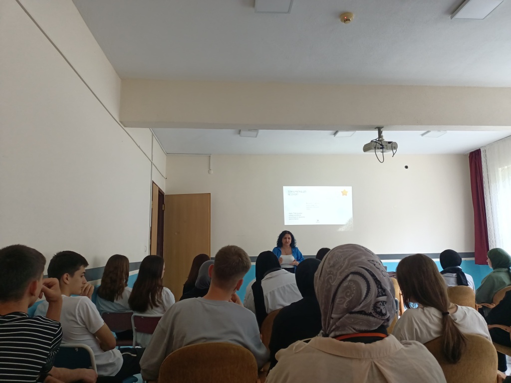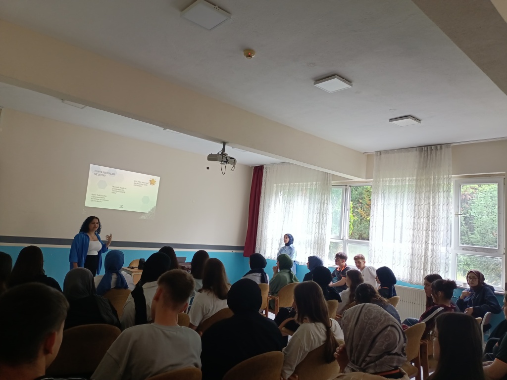 Habitat Derneği 11/06/2025 Çarşamba günü iki seans halinde Okulumuzda "Girişimcilik 101 semineri" verdi. Girişimcilik 101 Projesi kapsamında Proje Asistanı Damla Çabuk ve Ferizli Fikret İsmet Aktekin Anadolu Lisesi Mezun öğrencilerinden Zeynep Ramazan seminer çalışmasını birlikte sundular.